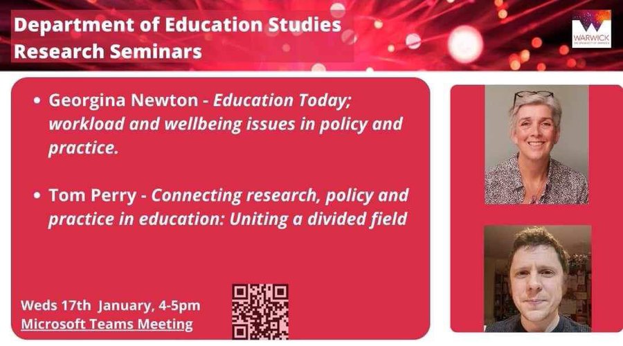 There is a research seminar today, brought to you by the Warwick Research-Informed Education cluster. All are welcome. Do come along and join us! Here is a link: